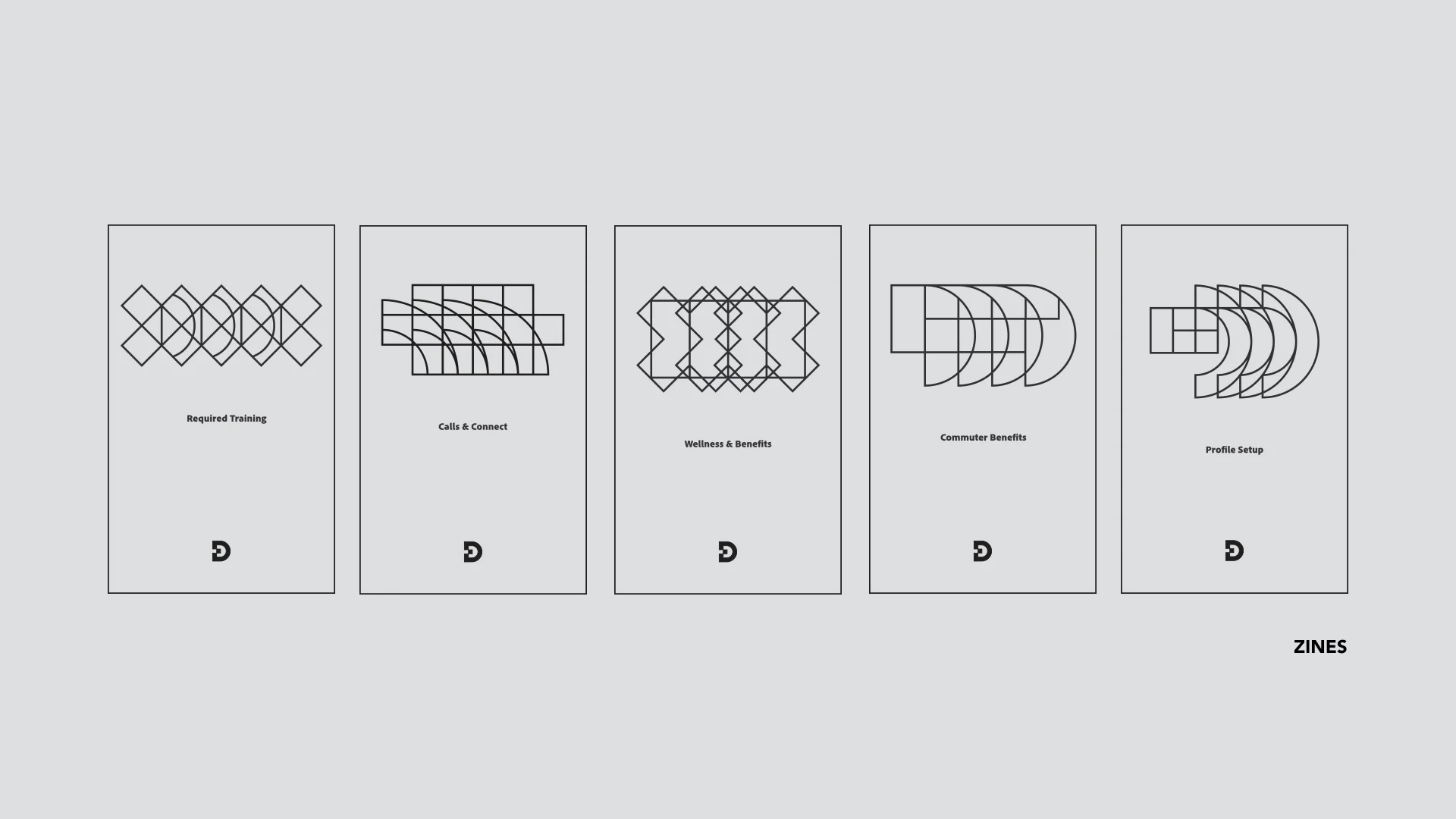 Each of these brand elements are a result of a combination of 2 shapes, representing a visual metaphor for when a corporation within the larger corporation work together, allowing new unique forms to emerge, inevitably requiring some "cut-off / sacrifice" of its original solo form. Speaking into the culture of Adobe Design as a forward thinking and collaborative corporation within a corporation.